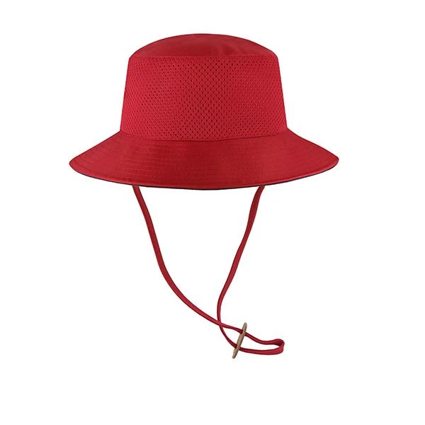 The Panama Pail ’47 Bucket is a relaxed bucket hat with a fitted crown, draw cord, and flat embroidery on the front. Made from tactel and athletic mesh.